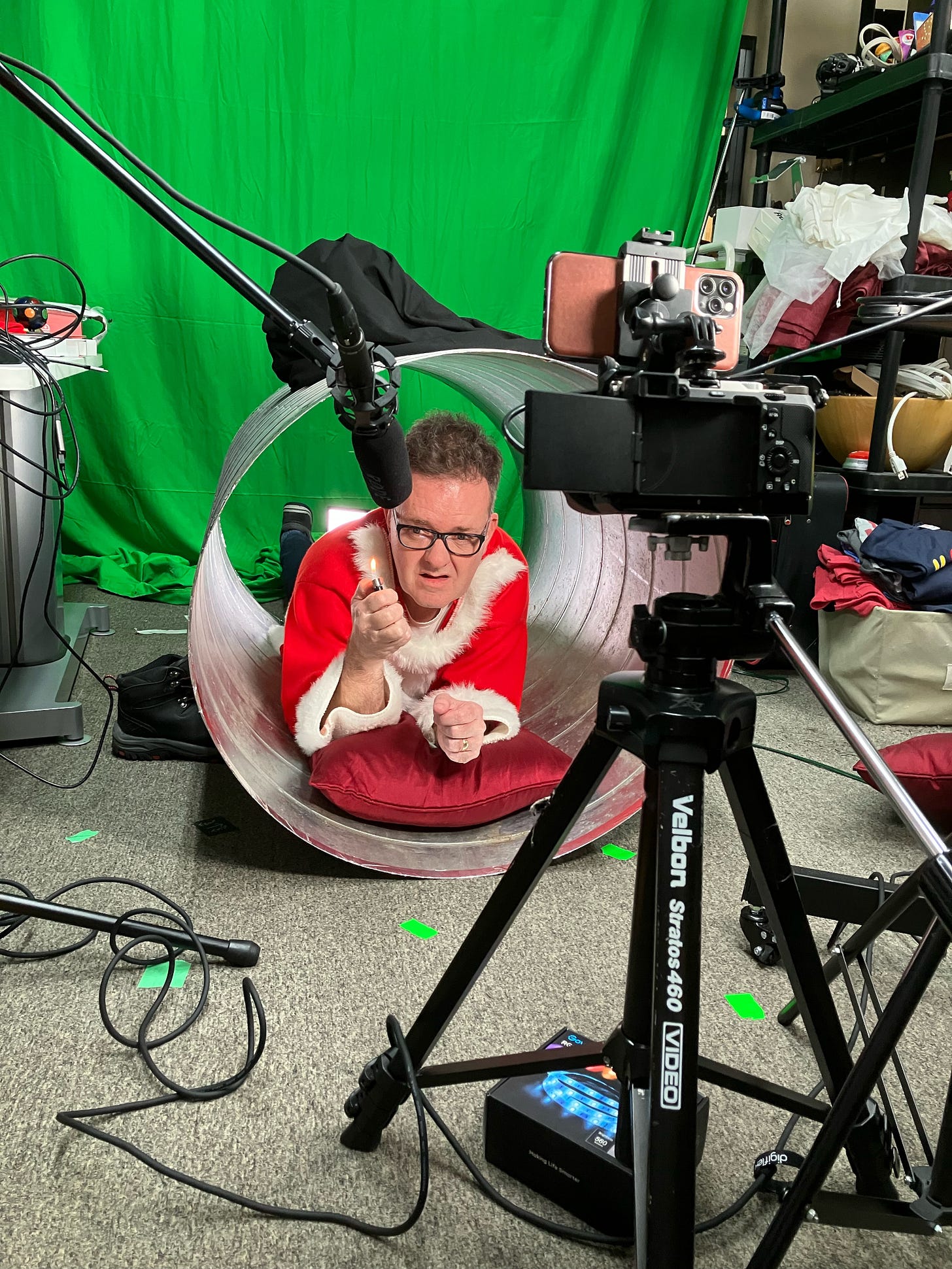 Shannon ran audio and camera and made sure I was in frame. I stumbled through my lines a number of times and finally got a good take.