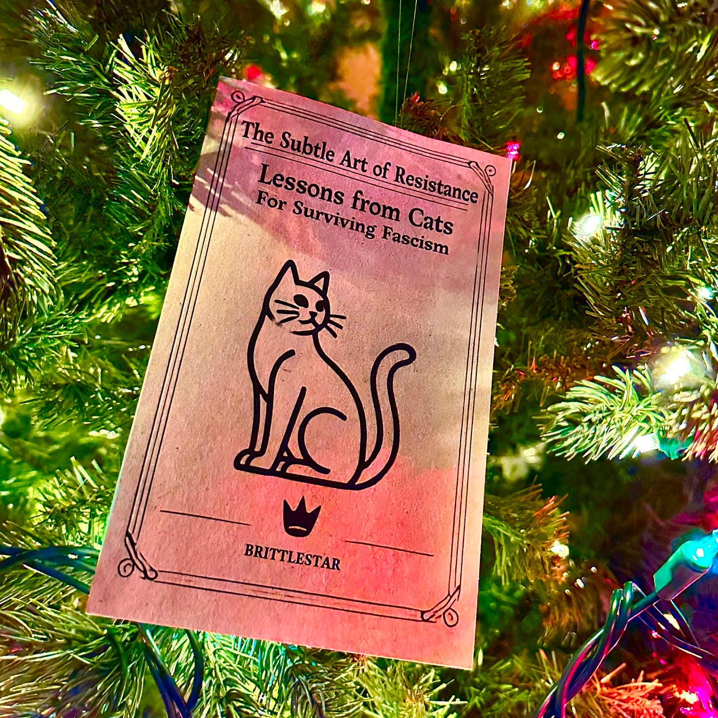 My book The Subtle Art of Resistance: Lessons from Cats For Surviving Fascism is a best seller in both the USA and Canada. It’s around ten bucks and makes a great inexpensive gift for the weird cat lover (and fascism hater) in your life.