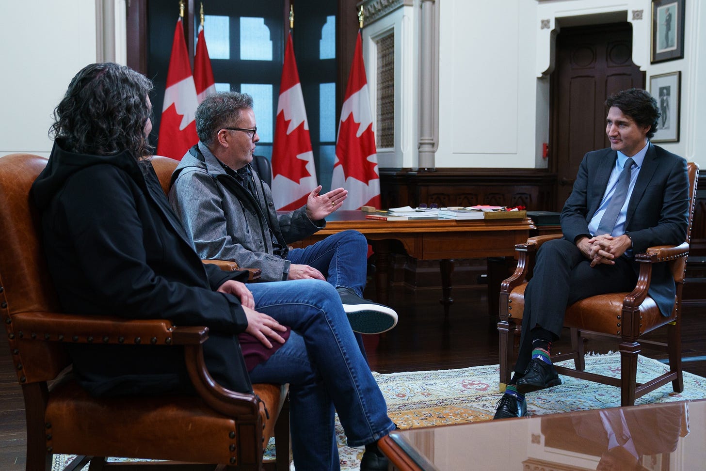 So, not expecting much more than a quick greeting and picture in a side office and with little time to prepare we arrived in our regular clothes avec mid-season coats… and then suddenly found ourselves sitting down in the Prime Minister’s Office in the West Block of Parliament.