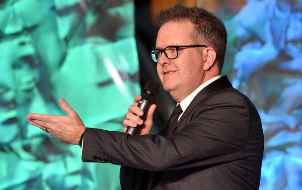 Author puts on suit, fools no one, at Coalition For A Better Future event