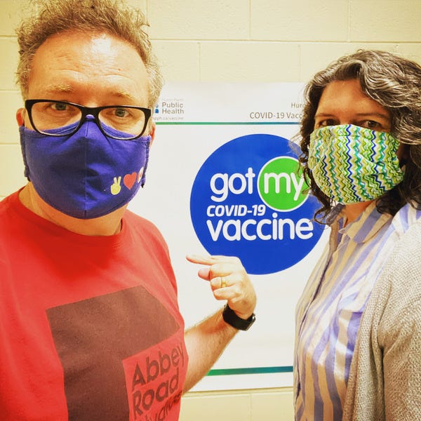 So many people we know had ZERO issues with their shots. Our youngest, Gregor, had his second jab of Moderna on Thursday and woke up on Friday with a slight headache that he couldn’t determine was from the shot or the numerous White Claws the night previous with pals on a patio. Damn the youth.