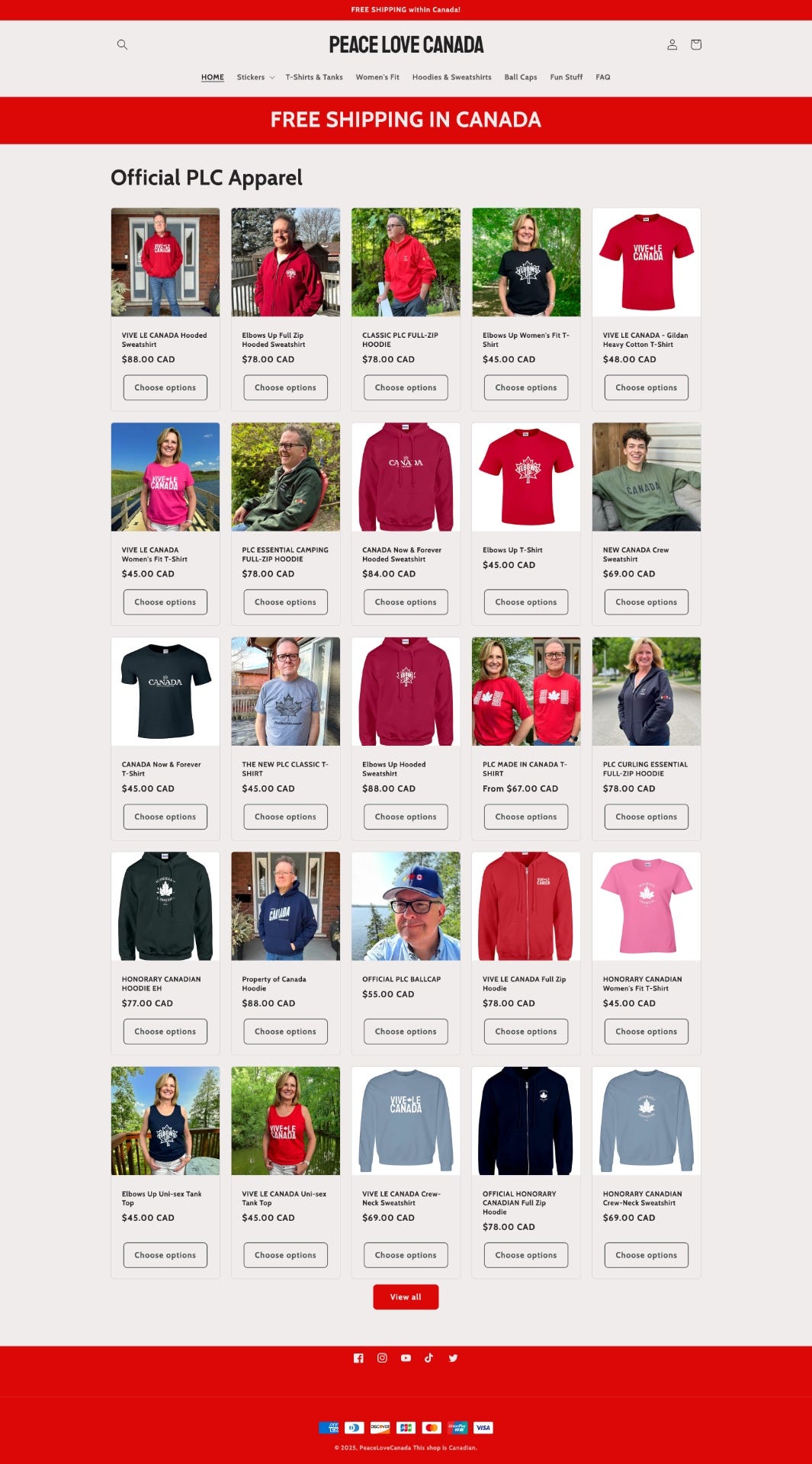 Check out our merch site, PeaceLoveCanada.ca. That part of our business is run by Shannon and she cares deeply about making sure every customer is happy. I think she cares too much… I mean, buy what you’re buying and get out but Shannon goes above and beyond to make sure every purchase is a smooth one. How smooth? We have hundreds of repeat customers.