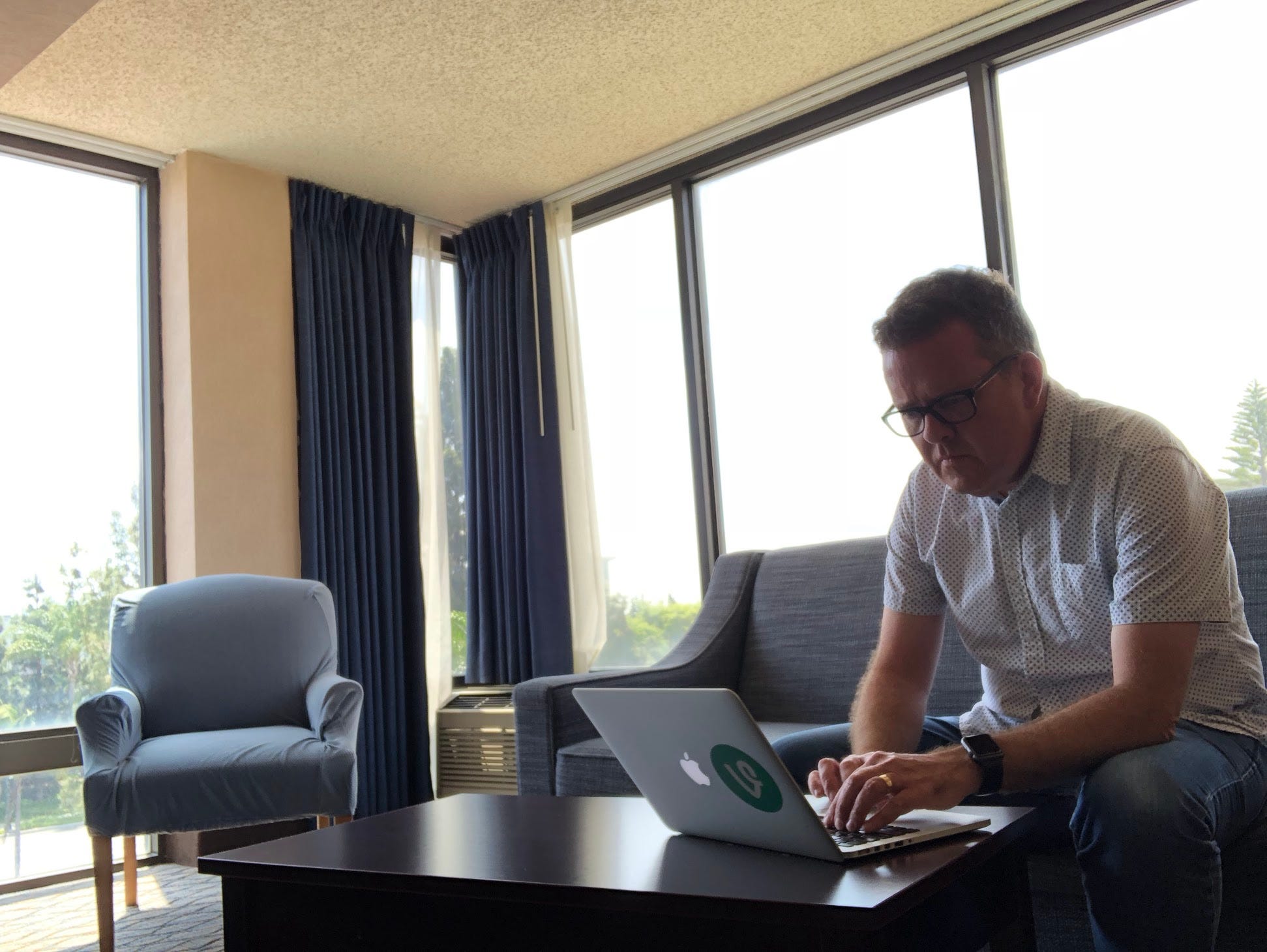 (pictured: Author combs through recent missive to ensure he hasn’t packed it with self-defecating humour)